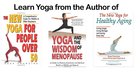 Suza Francina is a graduate of the Iyengar Yoga Institute of San Francisco. A yoga teacher since 1972, Suza has taught at the Omega Institute, Yoga Journal Conferences, and other venues, nationally and internationally. She is the author of six books, including four popular books on yoga for people at midlife and older, translated in many languages: Yoga for People Over 50 (Devin Adair, 1977); The New Yoga for People Over 50 (Health Communications, Inc., 1997); Yoga and the Wisdom of Menopause (HCI, 2003); and The New Yoga for Healthy Aging (HCI 2007).